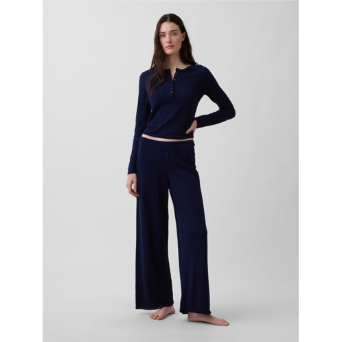 - Supersoft, lightweight knit fitted Henley pajama top. In a slightly cropped length.