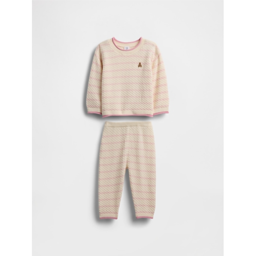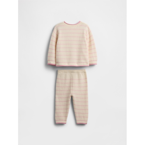 - Soft cotton crochet knit sweater and pull-on sweater pants outfit set.