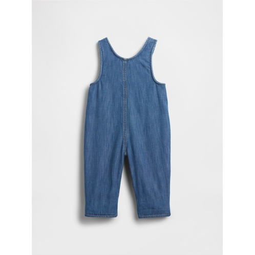 - Soft cotton denim baby overalls with a cozy microfleece lining.