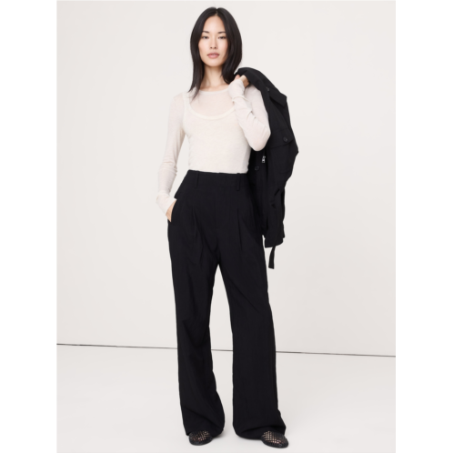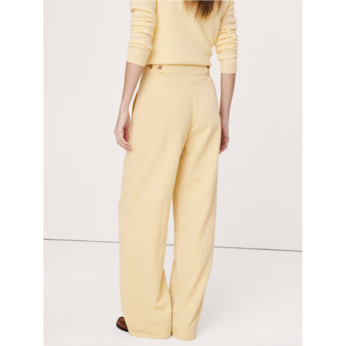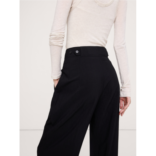 - We recreated an archival pant, preserving all the details we love about the original: the ultra-high rise, the button-tab at the back waist, and the pleated waistband construction. Here, we cut it in a drapey fabric we love for its softness and the way it emphasizes this pant's flowing, wide leg shape.