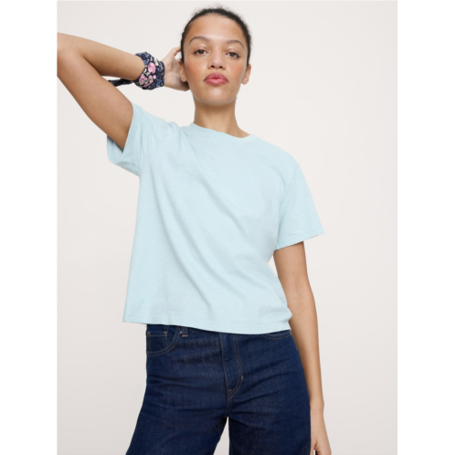 - Exceptionally soft, this lightly textured slub cotton jersey is a fave for its everyday appeal. Here, we cut this one a little short and just a bit boxy.