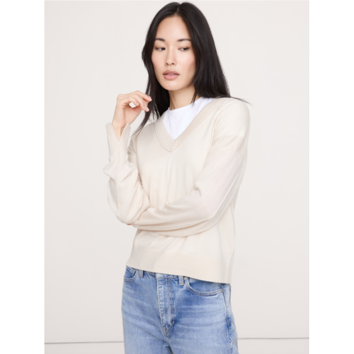 - Looks good, feels good. A slouchy v-neck sweater, crafted in beautifully warm and soft Merino wool, produced according to the NATIVA Wool protocol.