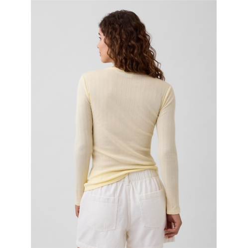 - Soft ribbed knit with pointelle detailing.