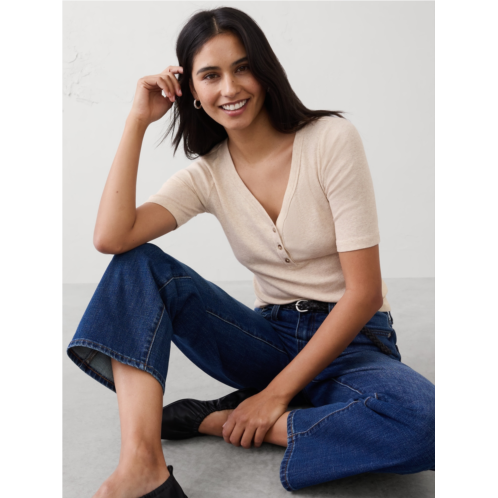 [US] bananarepublic Ribbed Elbow-Sleeve Henley T-Shirt
