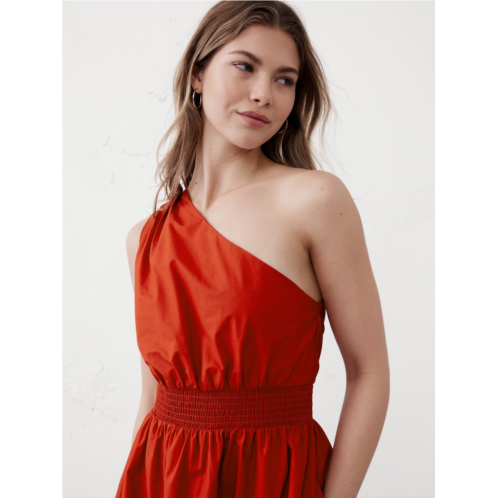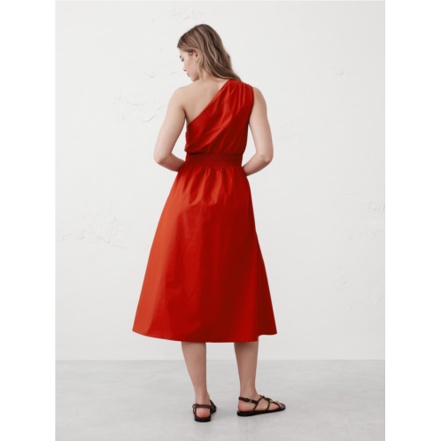 One-Shoulder Poplin Midi Dress