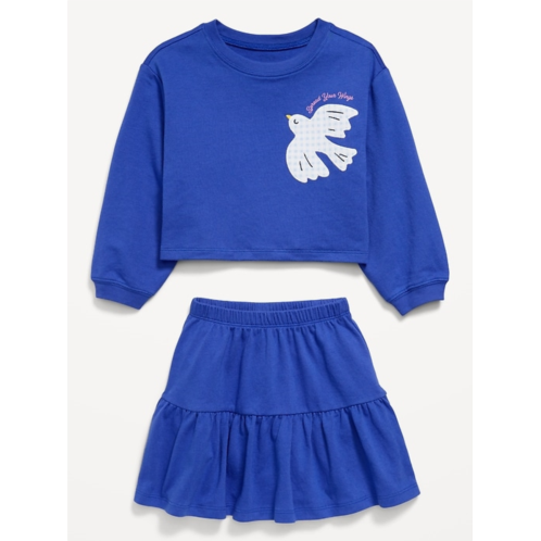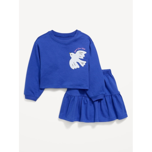 [US] OldNavy Long-Sleeve Graphic Sweatshirt and Skirt Set for Toddler Girls