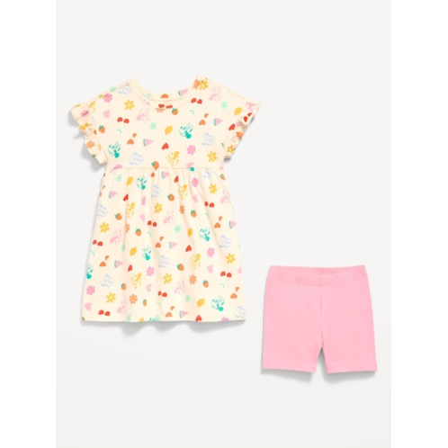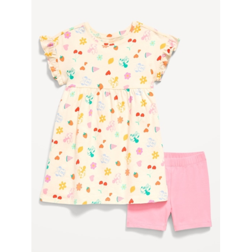 [US] OldNavy Disney Ruffled Short-Sleeve Dress and Biker Shorts Set for Toddler Girls