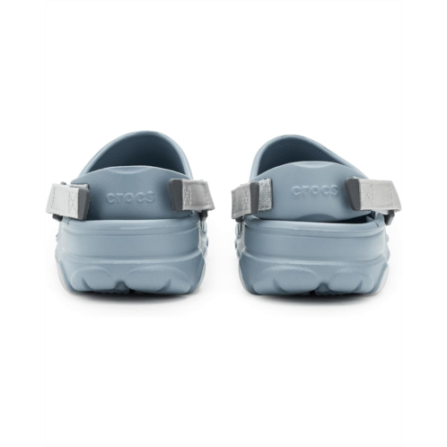 - Travel. Exploration. Adventures near and far. The Crocs Classic All Terrain Clogs are ready for it all, even in the harshest environments. With a more rugged rubber outsole that provides superior grip and stability, the ground beneath your feet has never felt more surmountable. Their lightweight Croslite construction makes them a practical and packable choice for any outing. The turbo heel strap ensures a snug and customizable fit, keeping you comfortable and supported no matter where your adventures take you. These clogs are made of an EVA upper and insole. The ventilation ports keep your feet cool and help shed water and debris, making them easy to clean and quick to dry. It's time to shift into all-wheel drive. Flip that strap back and go find your fun.