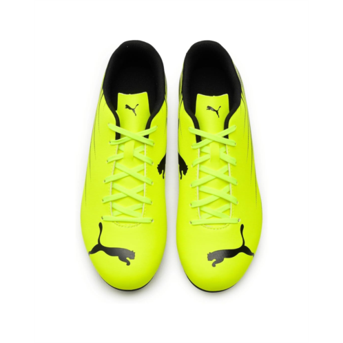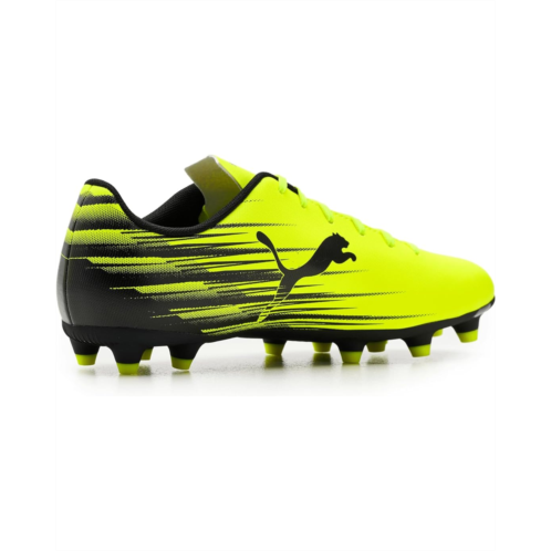 - Built for players who thrive on pace and precision, the PUMA Attacanto II Firm/Artificial Ground Soccer Cleats are inspired by pure speed and modern play. Designed with a soft yet durable faux leather upper, these cleats deliver a snug, responsive feel while standing up to intense match action. The fast, dynamic graphic print adds a bold, athletic edge that looks as sharp as your footwork. Inside, a smooth polyester lining enhances comfort and reduces friction, keeping you focused from kickoff to final whistle. The lace-up closure ensures a secure, locked-in fit for quick cuts and explosive sprints. Underfoot, the lightweight TPU outsole is engineered for reliable traction and stability on both firm and artificial ground surfaces, helping you accelerate, stop, and change direction with confidence.