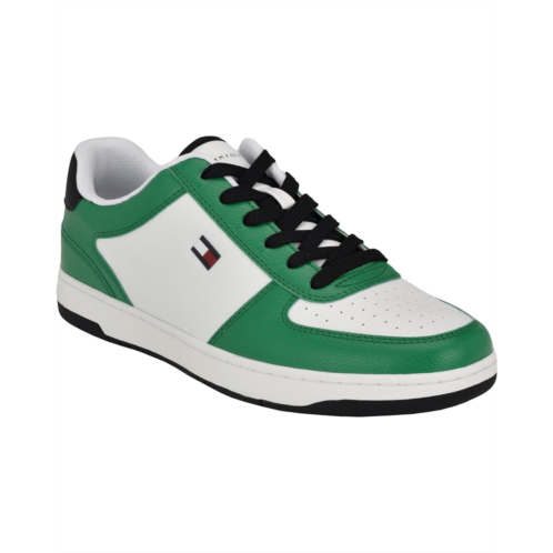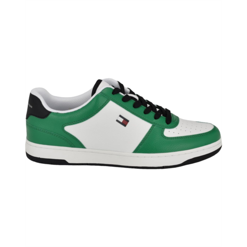 - Your search for high-quality, long-lasting sneakers has come to an end. The Tommy Hilfiger Tathan sneakers are the perfect choice. These lace-up sneakers have faux leather upper in color-block design, recycled polyester lining, and memory foam cushioned insole. Having an iconic Tommy Hilfiger flag logo detail at the side, these mid-top sneakers have a rounded toe shape.