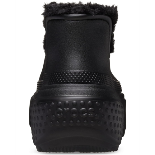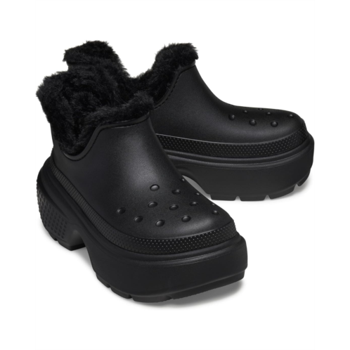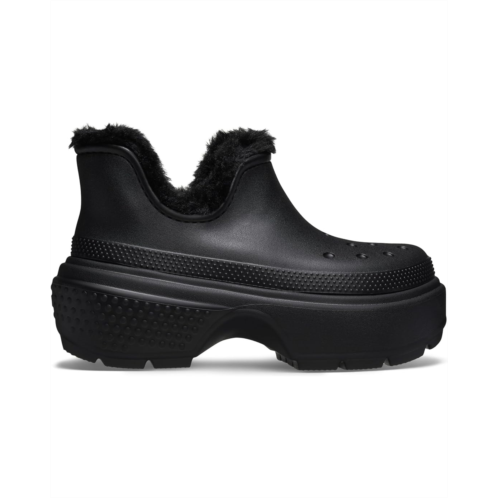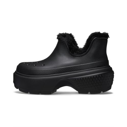 - Step into a world where fashion meets functionality wearing the Crocs Stomp Lined Shorty Boots. Made with an EVA upper and faux fur lining, these boots feature an exaggerated EVA outsole that makes a statement with every step. The faux fur insole of these booties provides unmatched comfort and warmth, ensuring your feet stay cozy even on the chilliest days. These faux fur rain boots redefine urban chic with their bold design and edgy Crocs twist. Designed to be as versatile as you are, these rain boots effortlessly transition from day to night, from work to play. Slip them on and feel the confidence surge through your veins as you conquer whatever the day throws your way.