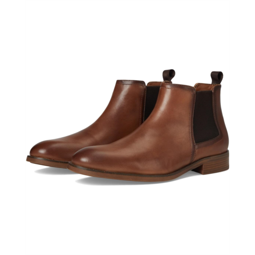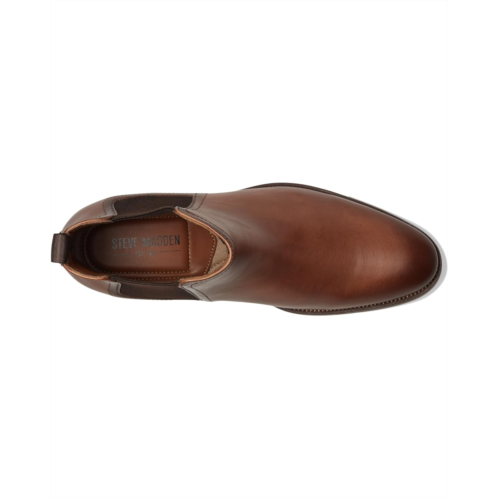 - Introducing Steve Madden Montreaux men's sleek leather upper chelsea boots with stacked heels. perfect blend of style and sophistication. Featuring almond toe, ankle-high silhouette, elasticized goring panels, and back pull tab for easy on and off.