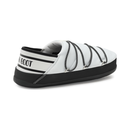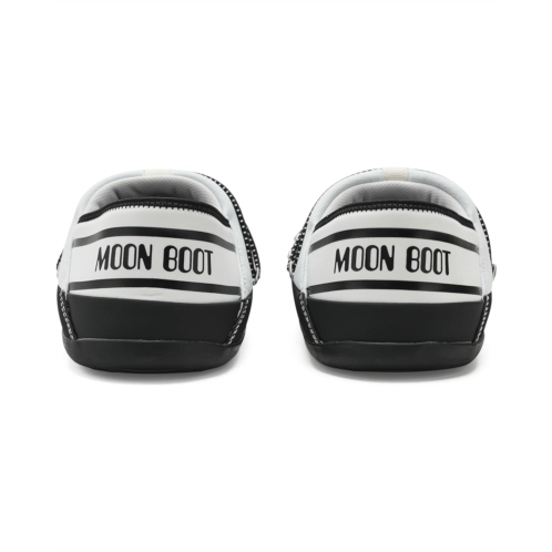 - The lounge-to-street revolution, Moon Boot Icon Slipper. Crafted with a premium leather upper, this slipper delivers a luxe feel with lasting durability, while the soft polyester lining and insole wrap your feet in all-day comfort. The pull-on design makes slipping in effortless, perfect for relaxed mornings or laid-back evenings. What truly sets this Icon apart are the laces arranged in irregular arches, giving the slipper a bold, expressive personality that feels fashion-forward yet functional. A synthetic rubber outsole adds reliable grip and flexibility, so every step feels steady and secure. Finished with contrasting stripes at the back for a subtle pop of style, this slipper proves that comfort doesn't have to be quiet.