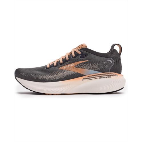- The Brooks Adrenaline GTS 25 shoes are smooth, reliable, and supportive for distraction-free miles. Their breathable engineered mesh upper and flatknit collar provide comfort and structure to help accommodate movement. These low-top shoes are made of an ethylene vinyl acetate insole and nylon lining. The Go-To Support GuideRails technology focuses from your feet to your knees, keeping excess movement in check throughout your natural motion path. They are designed with 3 mm of added DNA LOFT v3 cushion in the forefoot, 1 mm of added cushion in the heel for added comfort, and a 10 mm offset. These lace-up sneakers feature nitrogen-infused DNA LOFT v3 cushioning that delivers lightweight softness and feel-good comfort, mile after mile.