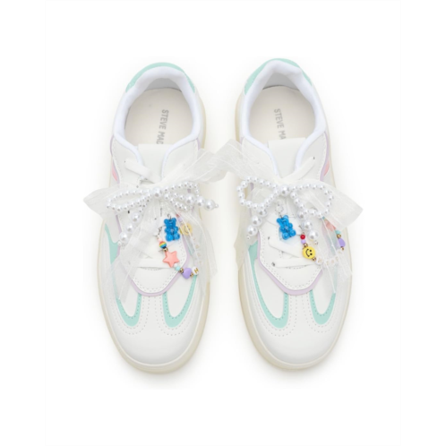 - This playful Steve Madden Kids Sianna sneaker mixes sporty style with girly flair, featuring a color-block upper and fun beaded charms that drape across the laces. Finished with a gummy outsole for comfort and trend-right appeal, it's the perfect everyday statement shoe.