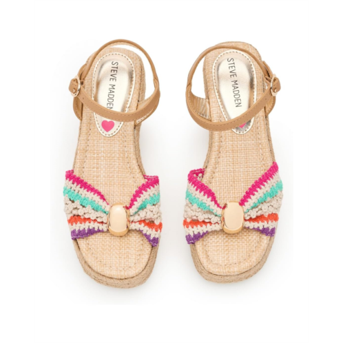 - The Steve Madden Kids Bowden blends playful style with all-day comfort for little feet. Designed with easy-to-wear straps and a fun, youthful look, these sandals are perfect for sunny days. The espadrille-inspired platform sandal feature raffia upper with mini studs, synthetic lining, and a padded insole.