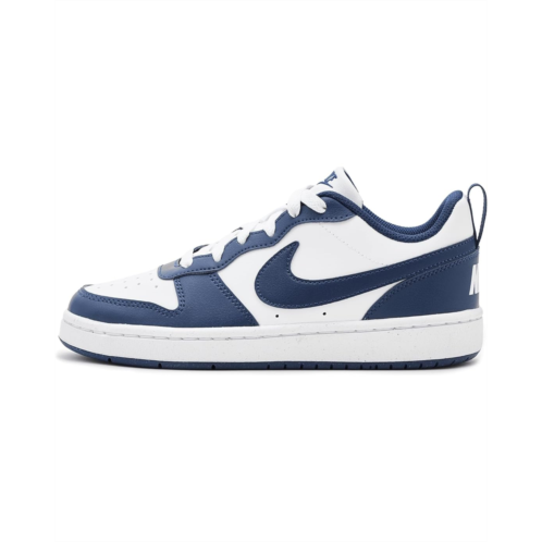 - The Nike Kids Court Borough Low Next Bloom brings classic court style to everyday adventures with a durable, kid-approved design. Crafted with a faux leather upper, this sneaker adds structure and long-lasting wear while keeping the look clean and sporty. The synthetic rubber lining feels comfortable for all-day play, while the rubber insole cushions every step, jump, and sprint. A tough rubber outsole delivers dependable traction, complete with flex grooves that support natural movement and flexibility. Designed with a full cupsole stitch, the rubber sole enhances durability so these shoes can keep up with busy school days and weekend fun alike. The secure lace-up closure ensures a snug, confident fit, helping kids stay focused on what matters most-having fun.