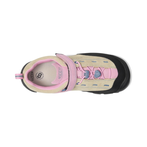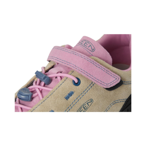 - Reward your kiddo's ever-wandering feet with the KEEN Kids Jasper II shoes. Their removable, cushioning cork footbed conforms to your kid's foot's natural shape, so you can rest easy knowing the fit is just right. The efficient design is easy to pack for comfy after-sport kids' shoes that will have little feet rejoicing after a long day of play. These hiking shoes are made of a premium, environmentally preferred suede upper with a breathable leather lining that keeps your feet cool and comfortable all day long. They are made of a rubber insole and rubber toe bumper that help protect your kids' feet from the slips and stumbles that come with open play. Made with a wide adjustable hook-and-loop strap and a lace lock bungee system to help them gear up and get out the door fast, these sneakers are built off KEEN's traditional wider footwear form. Gently brush them with a soft bristle brush or hand towel to remove loose dirt and debris, while stains can be treated by lightly rubbing a gum eraser in a circular motion over the location and lightly brushing afterward. These lace-up shoes are perfect for kids who love to get outside and play.