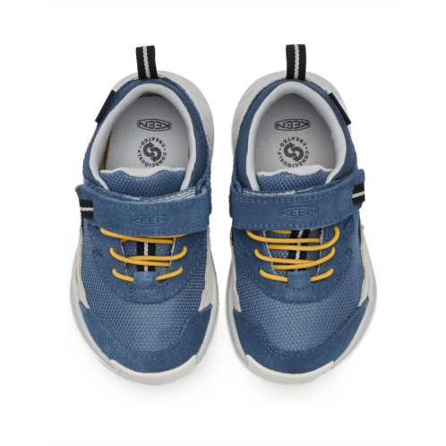 - Fast and light meets rugged and supportive, for all-around active kids. Versatile traction, easy-cinch elastic laces, and waterproof protection for anywhere, any weather fun. A sneaker-like design fuses with the durability of water-resistant leather and the technical benefits of a kid's hiking boot, so they can feel prepared to take on whatever terrain the day presents. Perfect for day hikes on the trail or running around the playground with friends, the KEEN Kids Hightrail Waterproof Hiking Shoes are built on KEEN's Contoured Fit that curves with the natural shape of the foot for a more secure fit. Their KEEN.DRY waterproof breathable membrane keeps your kid's feet dry and comfortable all day long by allowing vapor out without letting water into them. The durable leather upper stands up to the elements and is sourced from Leather Working Group-certified tanneries, the gold standard in environmentally preferred leather. These low-top shoes are made of a removable, responsive footbed for long-lasting comfort that doesn't compress quickly and a mesh lining. Their stability shank offers lightweight underfoot support for improved mobility on uneven surfaces, while the lightweight KEEN LuftCell technology cushions every step with micro air pockets in the sole for incredible lightness and rebound. Designed with a hook-and-loop strap for easy wear, these lace-up hiking shoes are a great choice for your kid's outdoor adventures.
