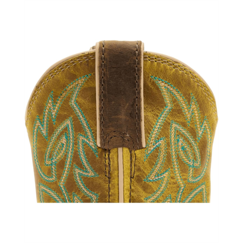 - Designed for young explorers with a love for style and action, the Justin Kids Canter Junior boots bring classic cowboy charm into everyday wear. Crafted with a rich leather upper, these calf-high boots showcase intricate green and white Western stitching that adds standout character to every step. The soft fabric lining and cushioned foam insole deliver all-day comfort, whether they're running, riding, or roaming. An easy pull-on design ensures a snug, hassle-free fit for busy kids always on the move, while the square toe offers a roomy, comfortable feel. Finished with a sturdy rubber outsole, these boots provide reliable traction and durability for every playful adventure. A supportive block heel adds stability without sacrificing comfort.