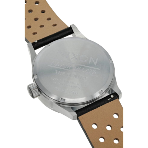 - There's no chain of command here; it's all you with The Sentry Leather watch from Nixon. Featuring a custom solid stainless steel case, this watch offers a hardened mineral crystal, a triple gasket crown with enamel fill, stainless steel screw down caseback and spring pin lugs.
