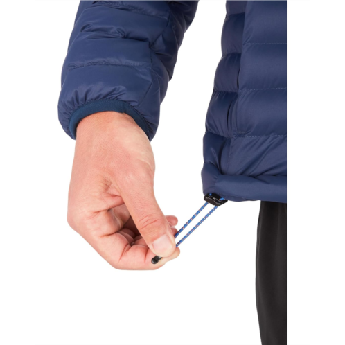 - The Marmot Echo Featherless Hoody is made from recycled fishnets making it good for the Earth and even better for cold days. This insulated hoodie is stuffed with a unique recycled synthetic featherless insulation that mimics the warmth and weight of 700-fill down-plus it insulates even when it's wet. It comes with long sleeves, a fixed hood with elastic binding for easy coverage, elastic-bound cuffs, and an adjustable drawcord hem that keeps the cold air out.