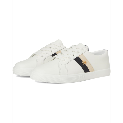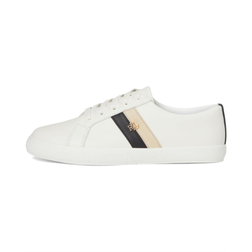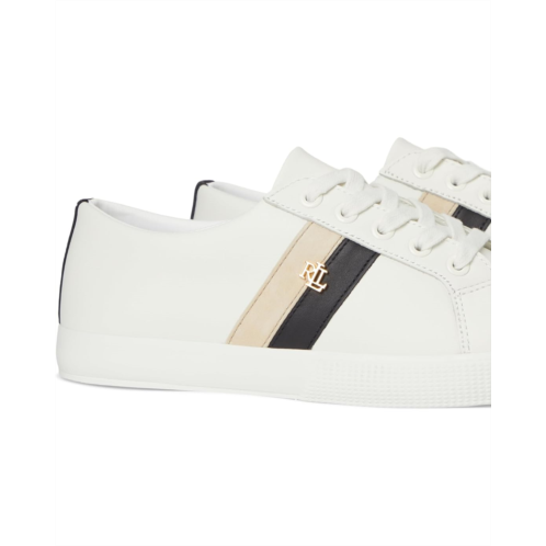 Step out in fashion-forward footwear wearing the Lauren Ralph Lauren Janson II Color-Blocked Leather Sneakers. Crafted with leather upper and lining, these sneakers offer a luxurious feel with each wear. The rubber insole guarantees all-day comfort, perfect for any on-the-go lifestyle. Show off your personal style with the color-blocked side stripes adorned with the signature 'LRL' logo hardware.