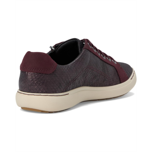 Style your casual weekend look in the versatile Clarks Nalle Lace sneakers. The casual shoes have a leather upper, leather lining, and a padded leather insole. The sneakers have a lace-up front with zippered side closure.