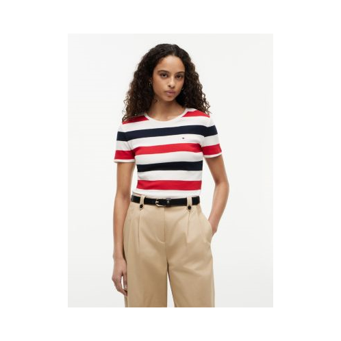 Tommy Hilfiger women's T-shirt. Bold rugby stripes lend a sporty feel of this comfy cotton tee.