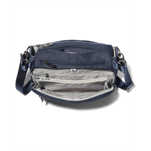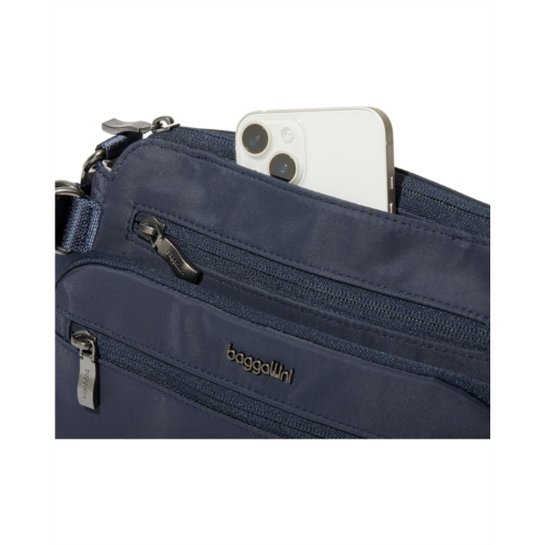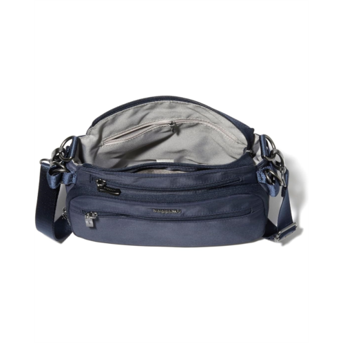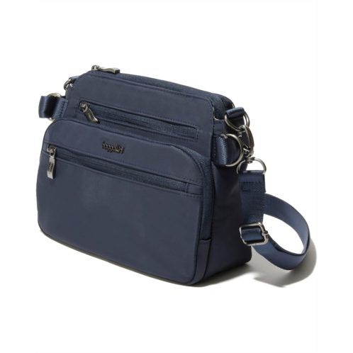 - This Baggallini Marais Crossbody Bag makes accessing your essentials quick and easy. Keep cards and cash separate from the main compartment with a built-in wallet with RFID-protection. It features a detachable & adjustable crossbody strap, 6 credit card slots, lipstick loop, privacy pocket, and a zipper closure. Need a spot for your phone, too? Store it in the scratch-resistant phone pocket and access it when needed-no fumbling with zippers.