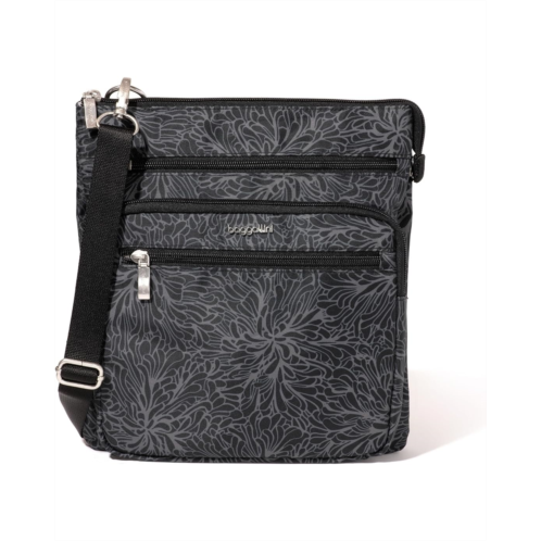 - Looking for a crossbody bag with a little more organization? This Baggallini Out and About Crossbody Bag is it. Designed with two divided interior compartments, including a secret privacy pocket, say goodbye to fumbling around for that lip balm or cash. Plus, with a front pocket designed with RFID-protected slots, tuck away your cards without worry. Crafted with high-quality nylon fabric, the crossbody features a detachable crossbody strap, a zipper closure with eight pockets, key leash, and pen holder for hassle-free organization.