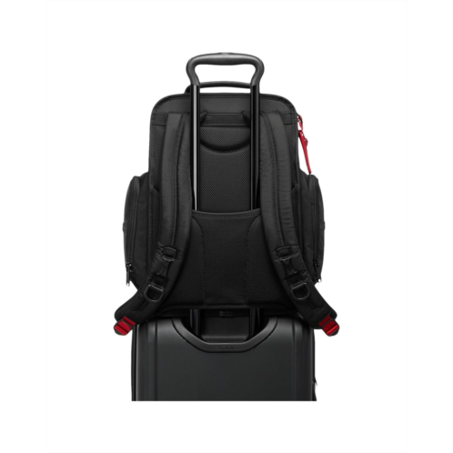 - For when you need to bring your office with you, the spacious, well-organized Tumi Tumi Brief Pack features the signature TUMI Red Pantone in celebration of their 50th anniversary. The external features include a zipper closure, a zippered padded laptop compartment, two front U-zipper pockets, a gusseted front straight-zipper pocket, and two side-zipper pockets (one with water-resistant lining). The padded adjustable straps, leather-wrapped top carry handle, and a Add-a-Bag sleeve make carrying the bag quite easy. Plus, the internal section includes a padded tablet pocket, three open pockets (one for files), a zipper pocket, three media pockets, three card pockets, pen loops, key leash, and TUMI Tracer.