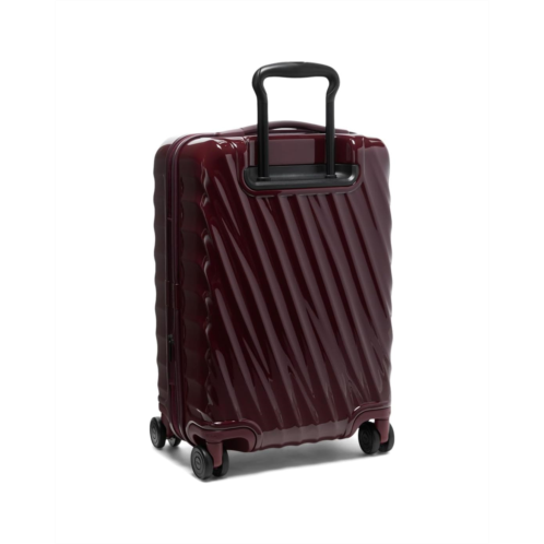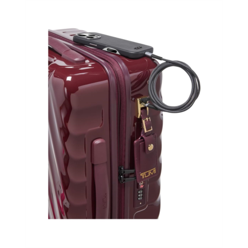 - Striking from any distance, this Tumi 19 Degree International Expandable 4 Wheel carry-on boasts the brand's most iconic design code: precise 19-degree angles cascading in fluid, sculpted contours. The compression straps, retractable top, side carry handles, and a 3-stage telescoping handle make it easy to carry around. This trolley bag is designed with two zippered interior pockets, a dual-compartment zippered pocket, a TUMI tracer, an integrated TSA lock, a built-in USB-C charging port (supports up to 65W USB-C 2.0 cables and fast charging up to 65W 3A), a zipper expansion, and four recessed dual spinner wheels. Made from polycarbonate, it has a PROTX2-coated lining. Offering zippered entry to the main compartment, this carry-on bag is lightweight, resilient, and perfect for international and domestic travel.