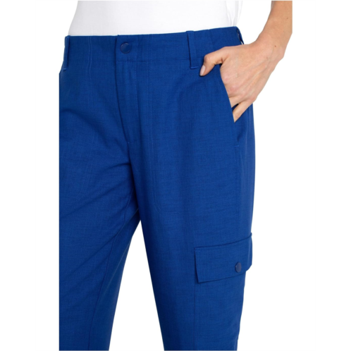 The Liverpool Los Angeles Cargo Mid-Rise Crop With Tab Hem Textured Stetch Woven Pant features tonal stitching for a clean and chic look. These mid-rise pants with cargo pockets and an adjustable tab hem prove that utility can be versatile.