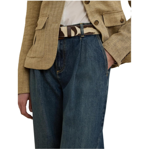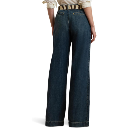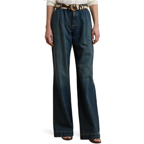 Make room in your closet for a standout staple, the Lauren Ralph Lauren High-Rise Pleated Wide-Leg Jeans. Designed to elevate your everyday with tailored polish, these jeans sit confidently above the natural waist, hugging through the hips and thighs before flaring into an elegant wide leg. The front pleats and sharp creases elongate your silhouette, while angled front pockets and sleek back welt pockets offer both form and function. Belt loops, back waist darts, and a zip-fly with a signature metal button closure give this pair a timeless finish. Crafted for the fashion-forward woman who craves structure with softness and a vintage-inspired vibe with modern grace, these jeans pair effortlessly with tucked-in blouses, cropped knits, or oversized blazers.