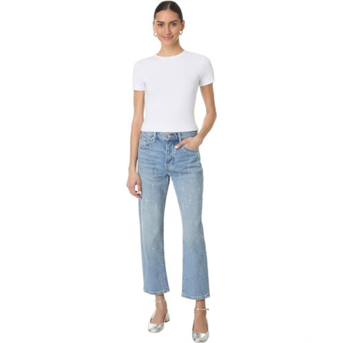 Style up versatile casual or party-wear looks wearing the Lucky Brand Rhinestone 90S Loose Crop Jeans. The loose-fit jeans features a zip-fly & button closure, belt loops on the waist, a five-pocket design, allover rhinestone detailing, and a straight-leg style with a slightly cropped silhouette.