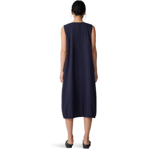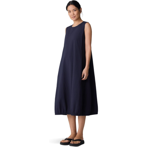 The Eileen Fisher Lantern Dress is a lightweight weave dress with the look of seersucker and the softness of organic cotton. Washed for a crinkled texture, this mid-calf dress is styled with a scoop neckline, a cinched hem, and a keyhole closure at the back. Stay stylish and comfortable wearing this sleeveless dress.