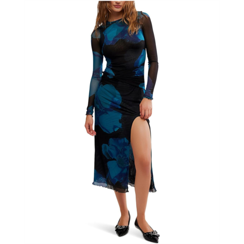 Made for a night out, this maxi pairs perfectly with your favorite strappy heels and bold accessories. Femme and flattering, this maxi features a printed mesh fabrication and long-sleeve silhouette with gathered waist detailing and an exaggerated slit.