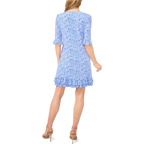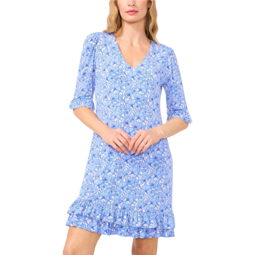 The CeCe V-Neck Knit Dress With Ruffle Hem offers the perfect blend of comfort and style. Crafted from a soft, breathable knit fabric, this printed dress features a flattering V-neckline that beautifully frames the face and adds a touch of elegance. It is designed with elbow-length sleeves and a ruffled hem. Designed in an A-line silhouette with an allover floral print, this short dress works for different occasions.