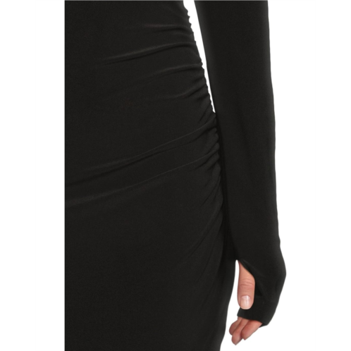 [US] Norma Kamali Long Sleeve Shoulder Pad V-Neck Side Drape Gown