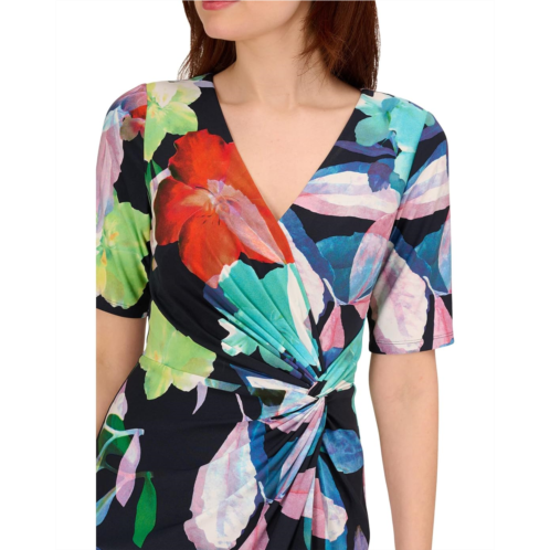 [US] Adrianna Papell Printed Stretch Crepe Chiffon Short Sleeve Side Wrap Dress
