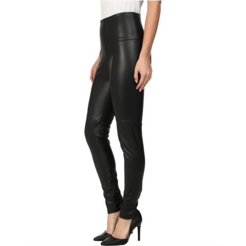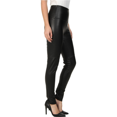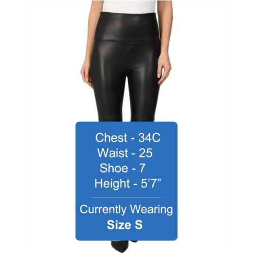 Vegan faux leather legging boasts four-way stretch for comfort and flexibility.