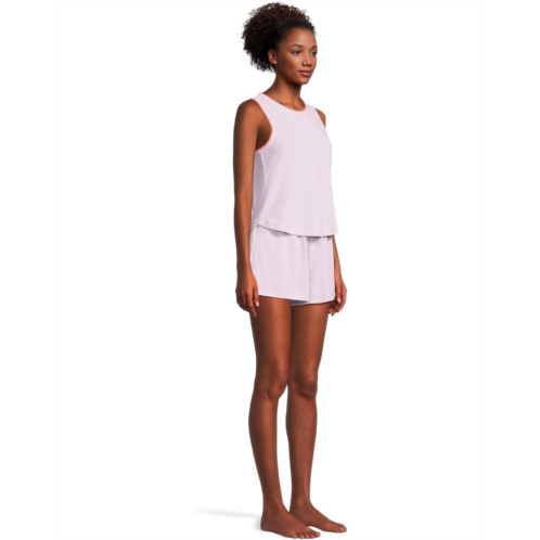 Enjoy a restful sleep in the Honeydew Intimates Kickback Tank Shortie Set. A classic scoop neck tank top featuring a cool novelty contrast blanket stitch detail, paired with matching shorts that include a back pocket in a waffle-knit fabric.