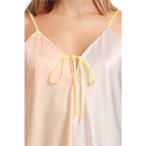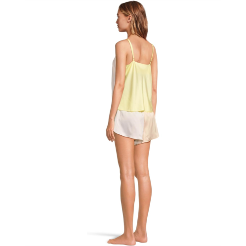 The Honeydew Intimates Sunglow Tank Shortie Set is a flowy cami top with functional tie, keyhole detail, and adjustable straps with matching shorts in a color block stretch satin.