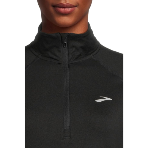 Engineered for the modern runner, theBrooksDash 1/2 Zip 3.0 is your go-to layering essential, delivering distraction-free comfort with lightweight warmth and next-level mobility. Crafted in a semi-fitted silhouette for a streamlined look, it's built with advanced stretch fabric that adapts to your every move-whether you're pacing through early morning miles or cooling down post-run. The collared neck with a half-zipper design offers adjustable ventilation, while thumbholes keep sleeves securely in place for a stay-put feel. Reflective branding enhances visibility in low-light conditions, ensuring you're seen and safe. The pull-on design and smooth construction eliminate bulk and chafing, making it ideal for layering without compromising breathability or performance.