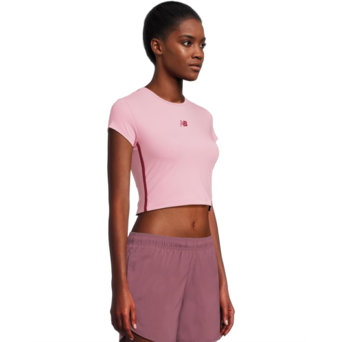 The New Balance Nb Harmony Fitted T-shirt features NB DRY fast-drying technology that wicks moisture away from your body to help you work out with ease. It is styled with short sleeves, a crew neckline, and a straight hem. This cropped tee is made from a polyester blend fabric for long-lasting comfort and breathability. Designed with NB branding at the center chest, this versatile tee is made for comfortable wear during daily activities.