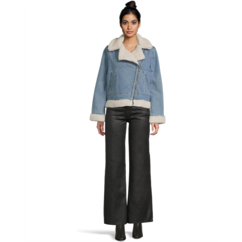 The Levi's Women's Denim Moto Jacket combines edgy style with cozy comfort. Featuring a full sherpa interior and trim, this moto-inspired silhouette keeps you warm while making a bold statement.