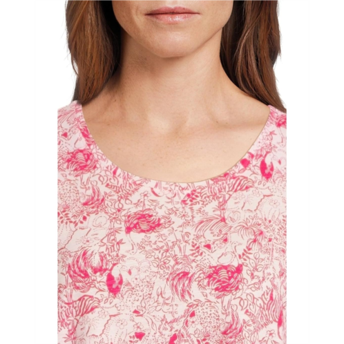 Add a touch of modern glam to your holiday looks wearing the Lilly Pulitzer Etta Scoop-Neck Top. Featuring multi-colored floral print all over, the pullover slub tee has a scoop neckline with short sleeves and curved hem.
