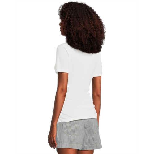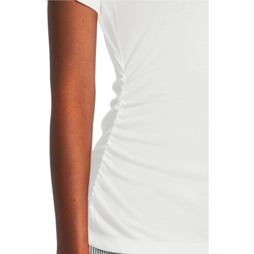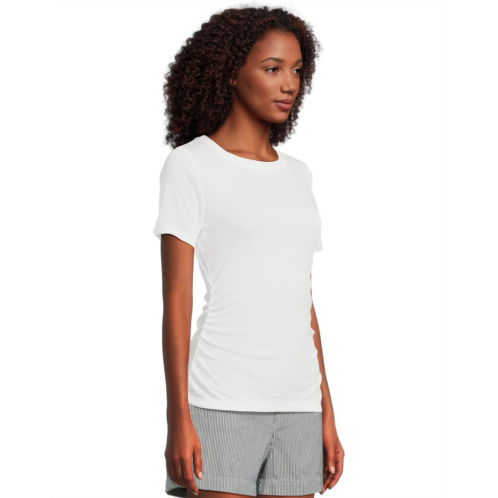 Give a touch of effortless styling to your look wearing the Sanctuary Dressy Twist Tee. It features crew neckline, short butterfly sleeves, side ruching details, and asymmetrical hemline.