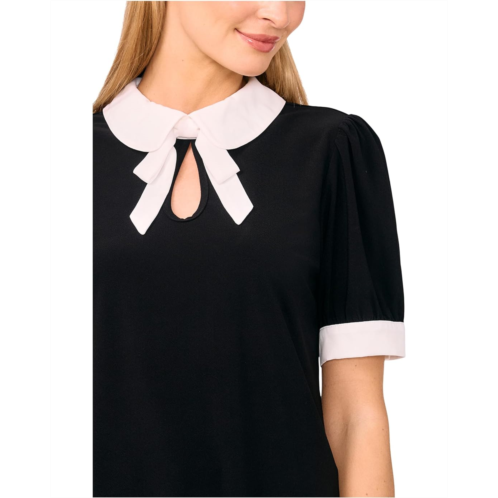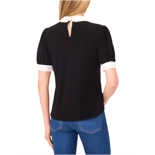 [US] CeCe Puff Short Sleeve Contrast Collar & Bow Top